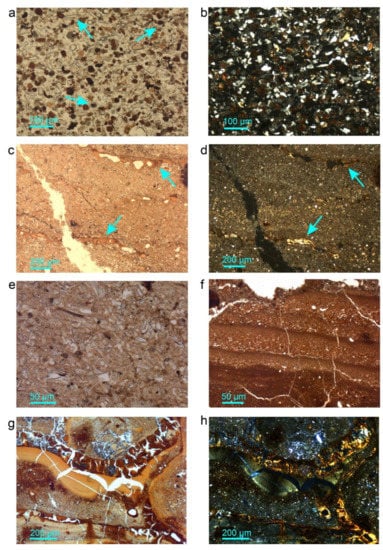 - Kühn, P.; Aguilar, J.; Miedema, R.; Bronnikova, M. Textural Pedofeatures and Related Horizons. In Interpretation of Micromorphological Features of Soils and Regoliths, 2nd ed.; Stoops, G., Marcelino, V., Mees, F., Eds.; Elsevier: Amsterdam, The Netherlands; Oxford, UK, 2018; pp. 377–423. ISBN 978-0-444-63522-8. [Google Scholar]