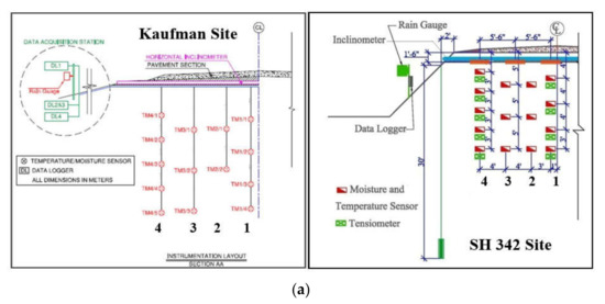 (a) Instrumentation plan for both pavements, (b) Field instrumentation on SH 342 and FM 2757.