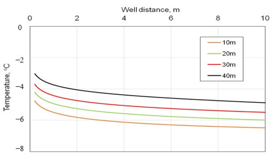 The thermal interaction of a producing gas well with permafrost was modeled for different pore fluid compositions and saturation values, within the 60 to 120 m depth interval (Figure 6, Figure 7 and Figure 8).