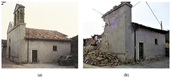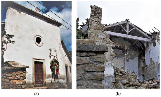 The St. Francis church in Cornillo Vecchio (Amatrice): (a) before and (b) after the earthquake occurred on 24 August 2016.