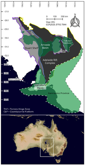 151. Armistead, S.E.; Collins, A.S.; Buckman, S.; Atkins, R. Age and geochemistry of the Boucaut Volcanics in the Neoproterozoic Adelaide Rift Complex, South Australia. Aust. J. Earth Sci. 2020, 68, 580–589. [Google Scholar] [CrossRef]