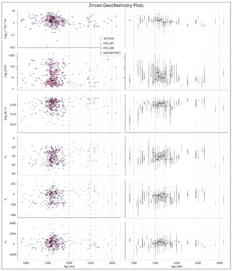 117. Hoskin, P.W.O.; Schaltegger, U. The composition of zircon and igneous and metamorphic petrogenesis. Rev. Mineral. Geochem. 2003, 53, 27–62. [Google Scholar] [CrossRef]