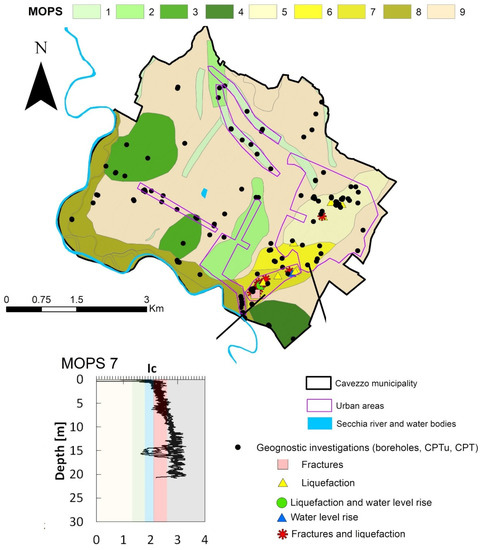 Lithological units (MOPS) in Cavezzo. The Ic trend for MOPS 7 is also reported.