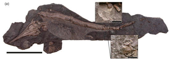 - Pardo-Pérez, J.; Kear, B.P.; Mallison, H.; Gómez, M.; Moroni, M.; Maxwell, E.E. Pathological Survey on Temnodontosaurus from the Early Jurassic of Southern Germany. PLoS ONE 2018, 13, e0204951. [Google Scholar]