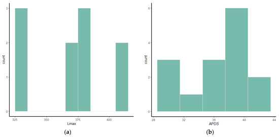 The DAPD has a relatively high coefficient of variation and deviates significantly from normality, similarly to PTD. Concerning the results obtained for the tibia (Table 2), it is possible to observe that only the PTD passes all three tests and shows a low p-value for the Shapiro–Wilk test of normality, indicating a strong deviation from normality.
