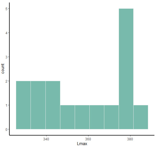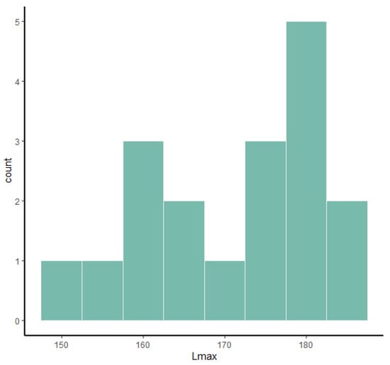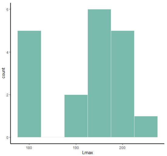 Frequency distribution of the maximum length (Lmax) in the MTIII of S. etruscus.