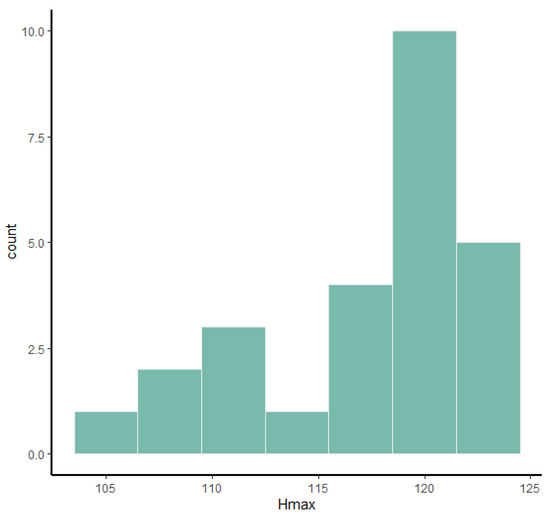 Frequency distribution of the maximum height (Hmax) in the calcaneum of S. etruscus.