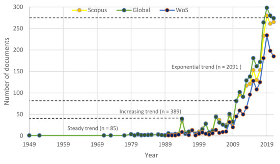 - Zhu, J.; Liu, W. A tale of two databases: The use of Web of Science and Scopus in academic papers. Scientometrics 2020, 123, 321–335. [Google Scholar] [CrossRef]