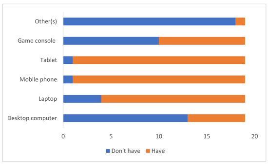 The results of the initial questionnaire showed that the majority of the students use technological devices, especially mobile phones and tablets. In the 7th grade, 18 students owned a mobile phone and/or a tablet (Figure 1), mainly with Internet connection.