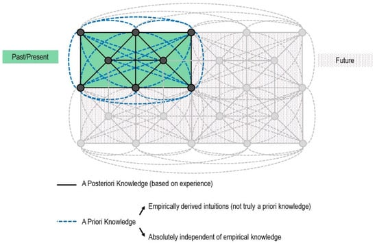 - Engineering Technical Knowledge. Knowledge may begin with experience, but it would not be correct to say that the full compendium of engineering knowledge arises from experience. Experience is a subset of technical knowledge (Figure 3), and it manifests itself through a series of “learning nodes” []. However, the aggregate knowledge transcends sequential connections, and additional connections exist (dashed lines in Figure 3) that represent a form of a priori knowledge, i.e., knowledge that is independent of experience using Kant’s definition []. Conversely, a posteriori knowledge is the knowledge that originates solely from experience. Empirically derived intuitions are still a form of a priori knowledge, and those intuitions represent jumps across sequential learning nodes.