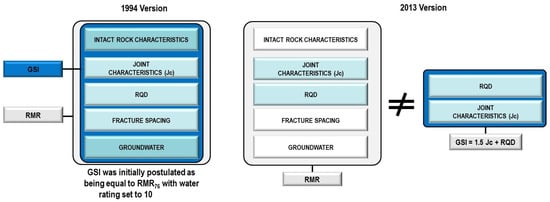 Preferential attachment biases resulting, amongst others, from different styles and schools of rock engineering practice are also responsible for the irreversibility of engineering knowledge when applied in the form of classification systems []. Rock mass classification systems are traditionally used in rock engineering to link observable geological and geotechnical qualities to a numbered rating scheme to derive quantitative data for engineering design and to provide a quantitative measure to compare geological conditions at different sites.