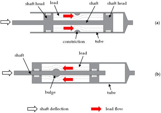 The PS-LED is composed of four main parts: the straight shaft, the tube, the cap and the lead core (Figure 2). The tube, shaft and cap are made of high strength steel, and the shaft is plated with hard chromium. A bushing provided in the cap drives the linear motion of the shaft and prevents leakage of lead outside the device.
