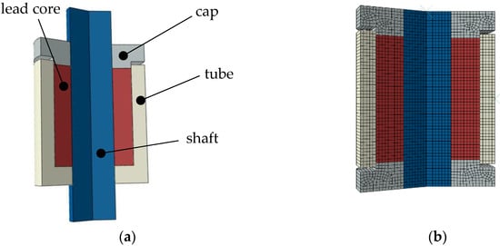 The idea of dissipating energy by exploiting the plastic deformation of a lead core was conceived by Robinson and Greenbank [,], who proposed dampers where the lead is confined into a steel tube crossed by a moving shaft (Figure 1). In the configuration shown in Figure 1a, the shaft is provided with two heads, which force the lead to flow through an orifice created by an annular constriction of the tube wall. In the configuration shown in Figure 1b, the orifice is created by the clearance between a bulge on the shaft and the internal wall of the tube; as the shaft moves, the orifice travels through the lead core and pushes the material to flow through. Two mechanisms contribute to the dissipation of energy, namely the plastic deformation of the lead material forced to flow through the annular orifice and the friction force activated between the lead core and the shaft [,]. Both mechanisms were demonstrated to be only weakly rate-dependent, so the energy dissipation capacity has a weak dependence on velocity too [,]. In the lead extrusion damper, part of the energy required to produce the plastic deformation of lead is dissipated as heat, while the other part is stored and used to promote the recrystallization of the deformed lead, by which the material regains its original properties; this mechanism results in consistent force across multiple cycles of response without any loss of strength or stiffness, or any other low-cycle fatigue effect [].