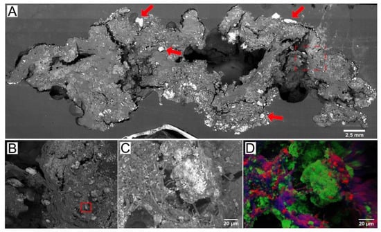 - Pacton, M.; Wacey, D.; Corinaldesi, C.; Tangherlini, M.; Kilburn, M.R.; Gorin, G.E.; Danovaro, R.; Vasconcelos, C. Viruses as new agents of organomineralization in the geological record. Nat. Commun. 2014, 5, 4298. [Google Scholar] [CrossRef] [PubMed]