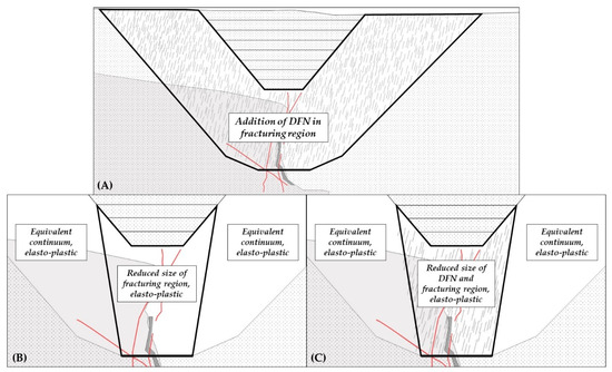 It should be noted that any intervening simplification process adopted on the basis of reducing run times and improving mesh quality (whether considering continuum or discontinuum modelling) may also impact the results. As indicated in Figure 5, the simplification process needs to address three important questions: