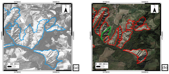 Initially, 328 badlands were mapped from the 2016 orthophotos (Figure 6). The badlands covered an area measuring 7.04 km2. Subsequently, a second badlands inventory was formed starting from the orthophotos from 1988, observing an eroded area measuring 10.34 km2. From the badlands area comparison, it is possible to observe a decrease of approximately 31.7% in roughly 31 years.