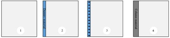 Calculation phase to simulate the column installation process: (1) initial phase; (2) create a hole and insert dummy; (3) applied displacement; (4) insert column material and consolidation.