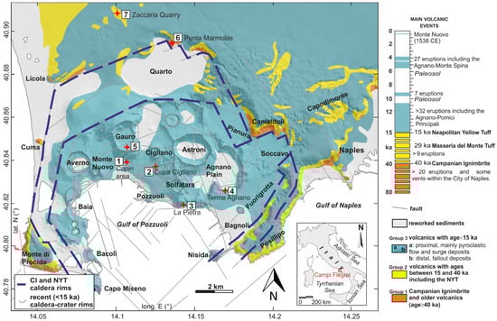 - Scarpati, C.; Perrotta, A.; Lepore, S.; Calvert, A. Eruptive history of Neapolitan volcanoes: Constraints from 40Ar-39Ar dating. Geol. Mag. 2013, 150, 412–425. [Google Scholar] [CrossRef] [Green Version]