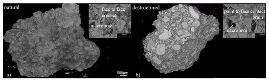 Micro-CT images from the Bruker Skyscan: (a) after oedometer test ON4; (b) after oedometer test OD9.