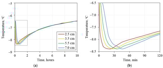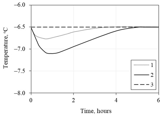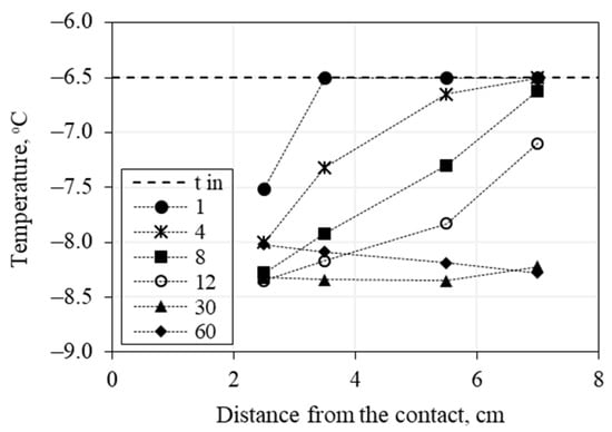 Having reached the minimum value, the temperature gradually returned to −6.5 °C. After three hours of interaction, the temperature distribution was almost uniform, though warming continued.