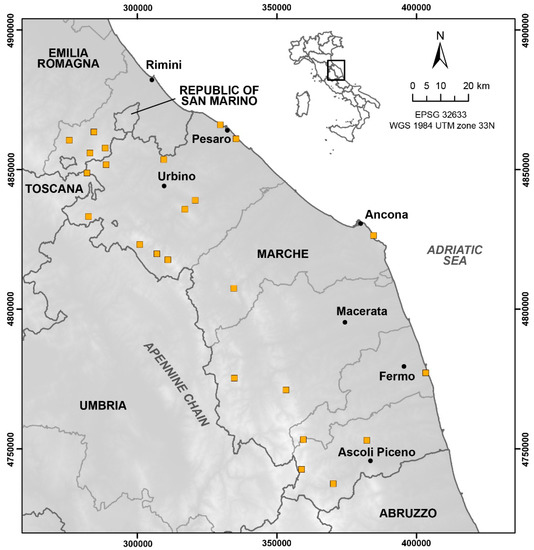 The Marche and southern Emilia-Romagna regions (central Italy) represent a restricted area between the Adriatic coast and the Apennine chain (