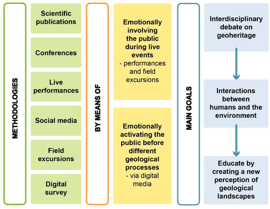 Figure 2). Alongside the scientific approach, we propose a method to communicate using art forms, such as music, poetry, and theatrical improvisation techniques, to encourage people to learn more about landscapes by integrating their origins and physical aesthetics with their natural, cultural, and artistic heritage.