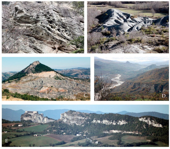 For several years, our research group worked on geoheritage and geotourism, following different communicative methods in areas of central Italy, particularly in the Marche and southern Emilia-Romagna regions. These areas were selected for their undoubted scientific and perceptive aesthetic value, and for the occurrence of many geosites of geomorphological interest, i.e., geomorphosites still untouched and characterized by various genetic and evolutive processes, and by an extraordinarily rich cultural and ecological context [