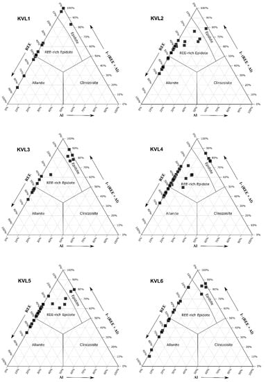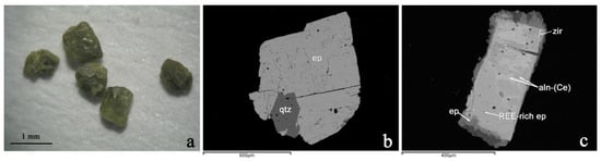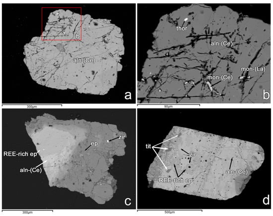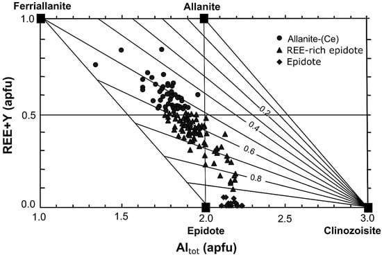- Gieré, R.; Sorensen, S.S. Allanite and Other: REE-Rich Epidote-Group Minerals. Rev. Mineral. Geochem. 2004, 56, 431–493. [Google Scholar] [CrossRef]