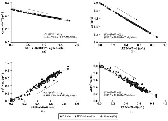 - Poitrasson, F. In Situ Investigations of Allanite Hydrothermal Alteration: Examples from Calc-Alkaline and Anorogenic Granites of Corsica (Southeast France). Contrib. Mineral. Petrol. 2002, 142, 485–500. [Google Scholar] [CrossRef]