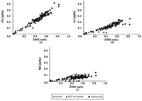 - Sawka, W.N.; Chappell, B.W.; Norrish, K. Light-Rare-Earth-Element Zoning in Sphene and Allanite during Granitoid Fractionation. Geology 1984, 12, 131–134. [Google Scholar] [CrossRef]