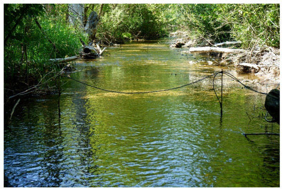 - Devens, J.A. Quantification of Longitudinal Dispersion Coefficient in Streams with the Use of Neutral Tracer. Master’s Thesis, Federal University of Ouro Preto, Ouro Preto, Brazil, 2006. Available online: http://www.repositorio.ufop.br/jspui/handle/123456789/2226 (accessed on 18 July 2022).