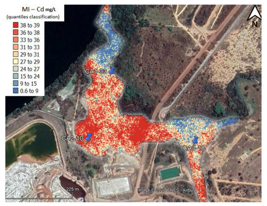 Considering the elements which represent the majority in the ores processed in the plant, Zn, Cd, Cu, As, and Pb, the levels found in these samples, representative of soils and alluvial sediments of the affected area, are extremely high, most of them above the limits considered toxic, according to the Brazilian legislation for soils [53] and sediments [54]. The pH values range between near acidic (5.77 in CA2-10) to near neutral (6.33 for CA3-18 and 6.54 for CA1-33).