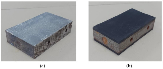 Piles were modeled by plates made of 09G2S steel (analog to European steel grade S355JR), which is used for piles in industry. The samples (Figure 3) were cut in the form of square parallelepipeds 80 × 50 × 20 (length, height, and width, respectively, in mm) and trimmed to surface roughness similar to that of hot-rolled pipe material. Roughness, which is an important parameter in the estimation of shear strength along the adfreeze surface and the related frost-heave uplift forces [32], was measured with a TIME TR 200 portable surface roughness tester. The measurements were applied to the working surfaces on both sides of the steel plates, at 5 points on each surface. The samples had an arithmetic mean roughness of Ra = 4.25 to 6.47 μm (4.61 μm on average) and a roughness height of Rz = 32.11 to 3951 μm (34.68 μm on average).