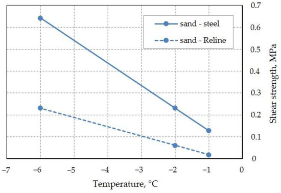 - Experimental determination of the adfreeze strength for main types of soils (sand, silty clay, and mortar) with a pile coated by a Reline jacket at temperatures from −6 to −1 °C;