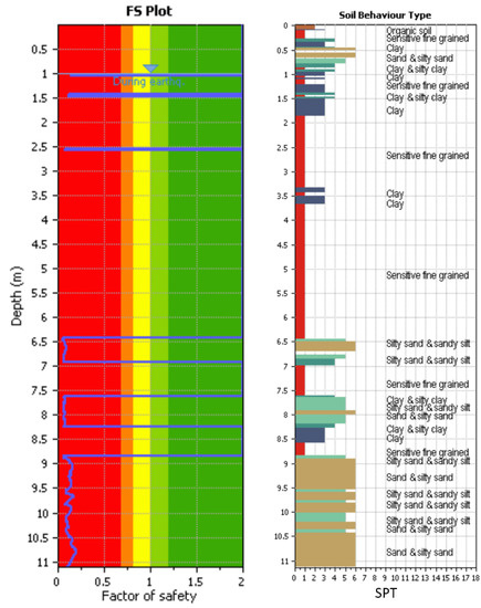 - Cetin, K.O.; Seed, R.B.; Kayen, R.E.; Moss, R.E.S.; Bilge, H.T.; Ilgac, M.; Chowdhury, K. The use of the SPT-based seismic soil liquefaction triggering evaluation methodology in engineering hazard assessment. Soil Dyn. Earthq. Eng. 2018, 5, 1556–1575. [Google Scholar] [CrossRef] [PubMed]