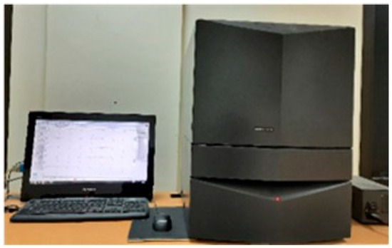 Tritium analysis was performed using a liquid scintillation counter Hidex 300 SL (Figure 4). The analysis was based on the triple-to-double coincidence ratio (TDCR) method [22]. The liquid scintillation counter utilized in this study is equipped with three photomultiplier tubes, which enable the counting of the triple-to-double coincidence ratio. This feature provides an efficient approach for analyzing unknown samples [23,24,25]. Each sample was analyzed five times for 200 min in a controlled environment, free from temperature fluctuations and direct sunlight. Monthly calibration with a standard source was used to monitor the device’s performance, and background radiation levels were kept under constant review using a shield in the Mikrowin parameter option for super low-level measurement. The details of the calculation procedures have been discussed earlier [26,27,28]. In addition, to prevent static electricity effects, the Hidex 300 SL has a mechanism to discharge static electricity from the sample before measurement, which increases the sample processing time by 1–2 s.