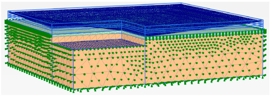 A typical finite element model in PLAXIS 3D.