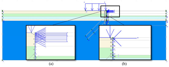 Capping beam represented with (a) line load and (b) point load in PLAXIS 2D.