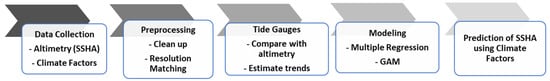 Schematic of the required steps of the proposed approach for modeling and prediction of sea level in coastal Florida.