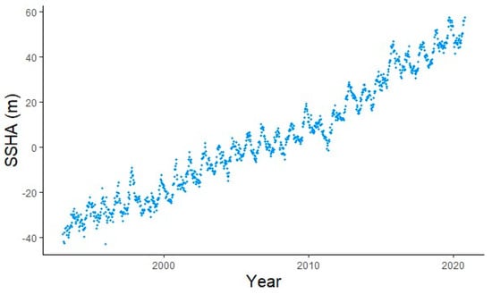 Factors such as average monthly winds, atmospheric pressures, and coastal currents have been found to be significant in sea level changes based on previous studies [41]. Hence, to improve the proposed models in this study, additional climate and environmental factors will be considered in our future work. Moreover, using tide gauge data as “ground truth”, in addition to the altimetry data, would provide a more accurate SSHA model [46,49]. The 15 locations along the Florida coast were selected specifically so that this study can be replicated with tide gauge data. Repeating this study with tide gauges would also align the results with previous sea level reports from Florida.