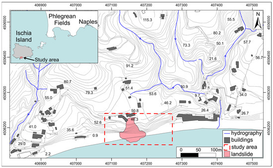 Ischia Island is part of the Phlegraean Fields volcanic complex, and it extends for about 42 km2 into the Gulf of Naples (Figure 2). The geological and geomorphological characteristics of the island make it highly susceptible to various instability events, including earthquakes, flow-like landslides, rockfalls, flash floods, and tsunamis, resulting in a multi-hazard environment [24,29]. The prevalent lithologies on the island are trachytes and latite-phonolites lavas, accompanied by pyroclastic soils and ancient mudflow deposits [30,31].