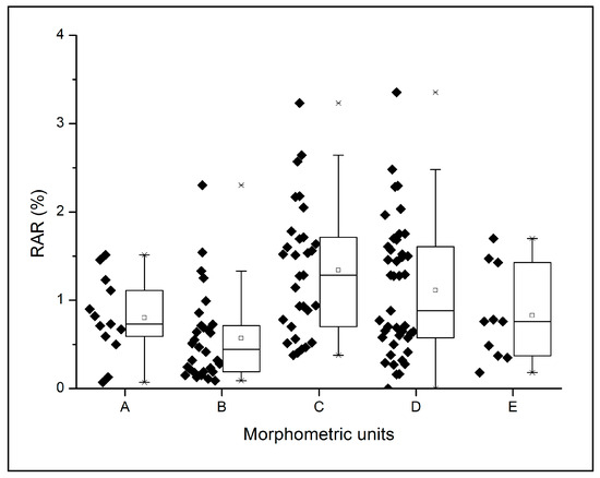 RAR results show no relevant differences following both lithologic classes and morphometric units. Our results are in contrast with the Tron et al. findings [