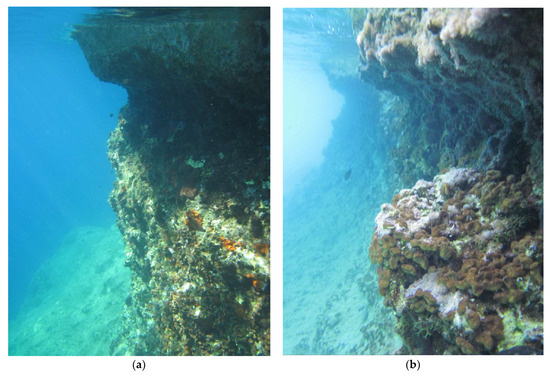 (a,b) Submerged tidal notches in the northern Corinthian Gulf, south of Antikyra (see location in Figure 1; photographs: Niki Evelpidou, 31 July 2010).