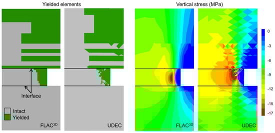 Comparison of FLAC3D model and continuum UDEC model at Stage 7.