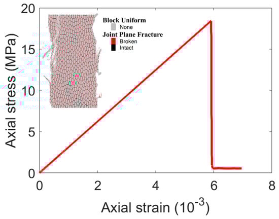 Modeling coal rib damage and the influence of rock support in the BBM has gained popularity in recent years [,,,]. For example, Sunkpal et al. [] investigated the effects of mining depth, mining height, and supports on coal mine rib stability, while Sunkpal et al. [] proposed a probabilistic approach to quantify rib stability and support requirements by combining the BBM and Random Set Theory. Previously, the authors of [] employed the BBM approach to simulate the observed rib damage in a longwall chain pillar in the West Cliff Mine (Australia). In that study, the blocks were inelastic (i.e., blocks can yield) and they were elongated along the pillar height in order to allow for fractures to form preferentially along the cleat direction. After being calibrated to the displacement and stress data from one site in the mine, the support in the model was modified to match the support pattern at an adjacent site, and pillar displacements similar to those recorded at this adjacent site were obtained. It was concluded that the elongated BBM approach is not only capable of reproducing observed pillar damage phenomena, but also the ground–support interaction mechanism, and it therefore has the potential to be used as a support design tool.