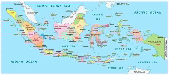 - WorldAtlas. Provinces of Indonesia Map; Reunion Technology Inc.: Montreal, QC, Canada, 2021. [Google Scholar]