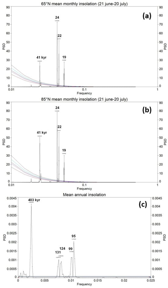 - Berger, A.; Loutre, M.; Tricot, C. Insolation and Earth’s orbital periods. J. Geophys. Res. Atmos. 1993, 98, 10341–10362. [Google Scholar] [CrossRef]