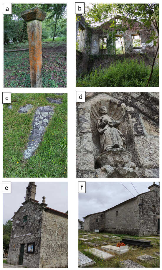 The geological setting of the Barbanza Peninsula, dominated by granite [], has played a fundamental role in the construction of the buildings with their natural environment. In general, most of the churches and cultural monuments in Galicia are built with granite material, possibly extracted from quarries located in nearby areas.