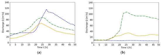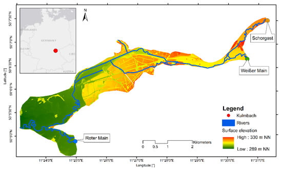 - The hybrid database of this study was generated by Crotti et al. [6] (see Section 2.6). The hydrological model LARSIM (Large Area Runoff Simulation Model) [20] was used by the authors to generate synthetic, real-based, and historical discharge scenarios for three rivers, which were flowing into and through the study area. These scenarios were simulated with the hydrodynamic model HEC-RAS 2D (Hydrologic Engineering Center—River Analysis System, Davis, CA, USA) [21] to obtain the corresponding maximum water levels in the catchment area as an inundation map.