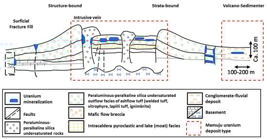 Schematic illustration for uranium deposit types from volcanic process (modified from [,]).